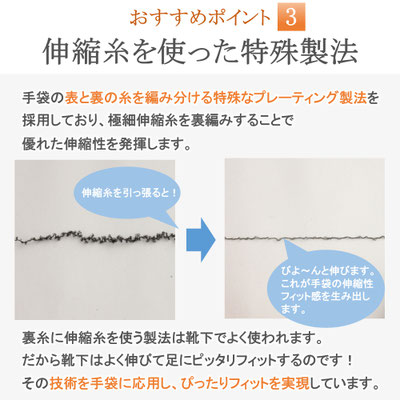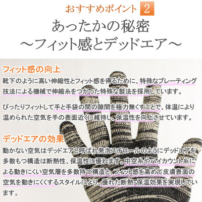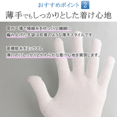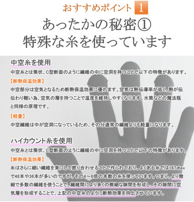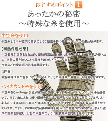 中空糸を使った高機能・断熱インナー手袋。パウダータッチで心地よい履き心地。