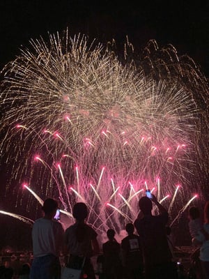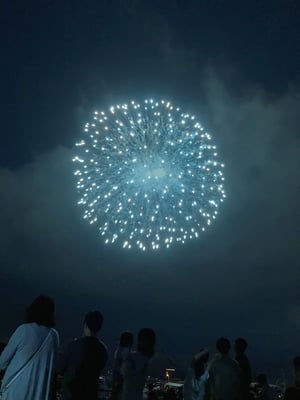 みんなのブログ · 17日 7月 2024 花火 この三連休の間に地元の花火大会がありました。 梅雨が明けておらず、前日から雨続きで今年は中止になるのではと思い スマホで雨雲レーダーを定期的に確認する一日でした。 開始30分前に現場に行きましたが、まだ雨が降っており、傘をさしてうろうろしていると なんと雨がやんできたのです。 おかげで曇り空の涼しい中で花火を見ることができたので、ちょうど良かったかなと。 無事花火があがり始めましたが、水たまりに映る花火も素敵でしたね。 150m程先の堤防から打ち上げていますので、いつもながら迫力は十分ですね! 最後は大盛り上がりでフィニッシュです! 今年も夏が来たなって感じです。 D.Ikeda tagPlaceholderカテゴリ: みんなのブログ