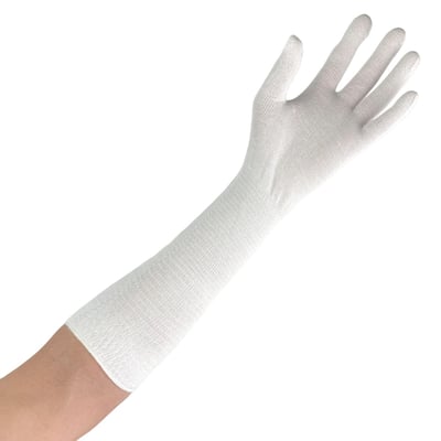 二の腕や肩まで届く手袋も可能ですので、世の中に無い長さの手袋が必要な際はご相談頂ければと思います。