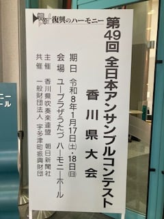 1月18日にユープラザうたづで開催されたアンサンブルコンテスト香川県大会に参加してきました。