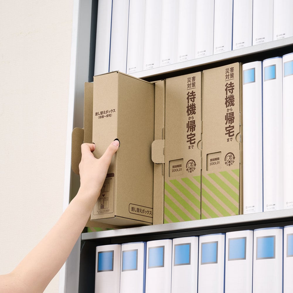 災害時の待機から帰宅までを支援し、使用期限のあるものは差し替えられます。
