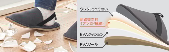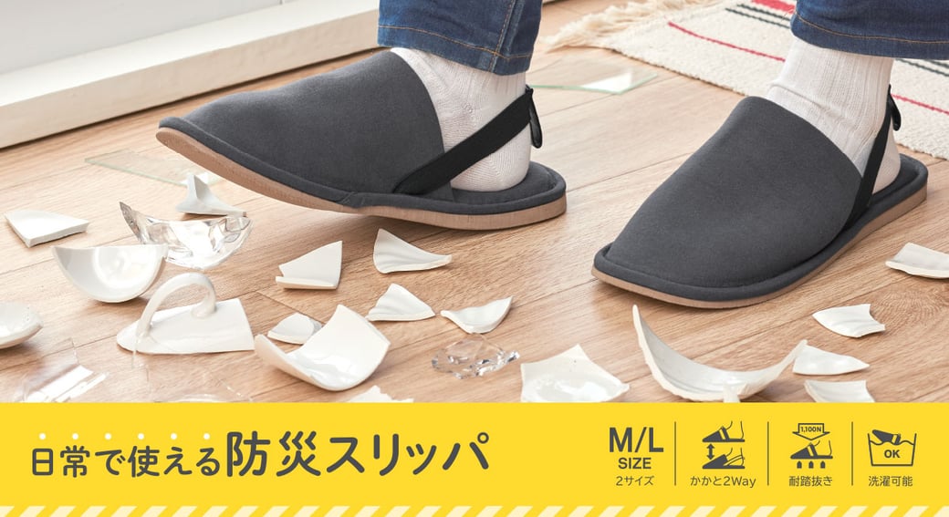 釘や割れたガラス片を通しにくいので、非常時に足を危険から守ります。