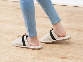 車内履きとしても使いやすいシンプルなデザイン。いざというとき、床に散乱した画びょうなどから足を守ります。