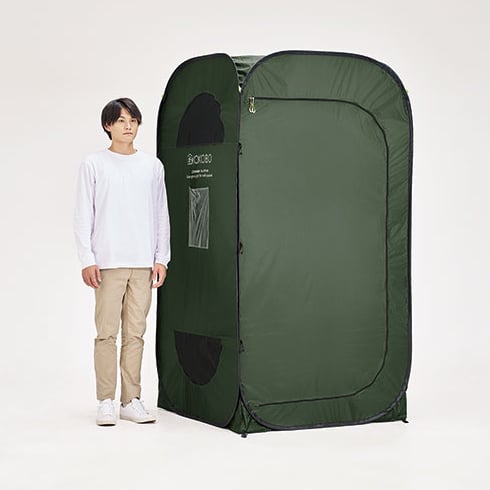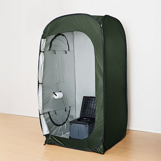 縦横2WAYで使えるコンパクトな防災テント。着替えやトイレ、避難生活での休息に。
