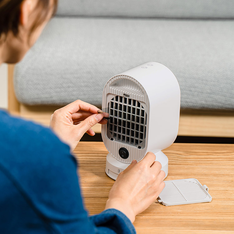コンパクトなフォルムながら暖かさはパワフル。転倒・過熱時は自動で電源オフし、安心してご使用いただけます。本体下部にあるランプでモード・風量切り替えの確認が可能。