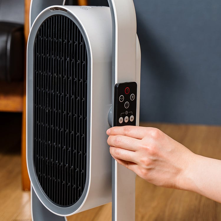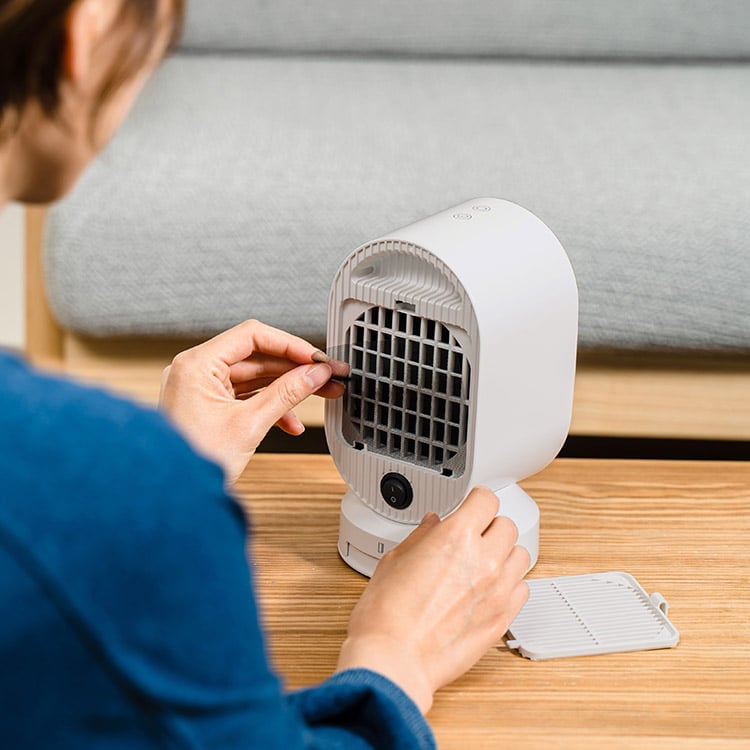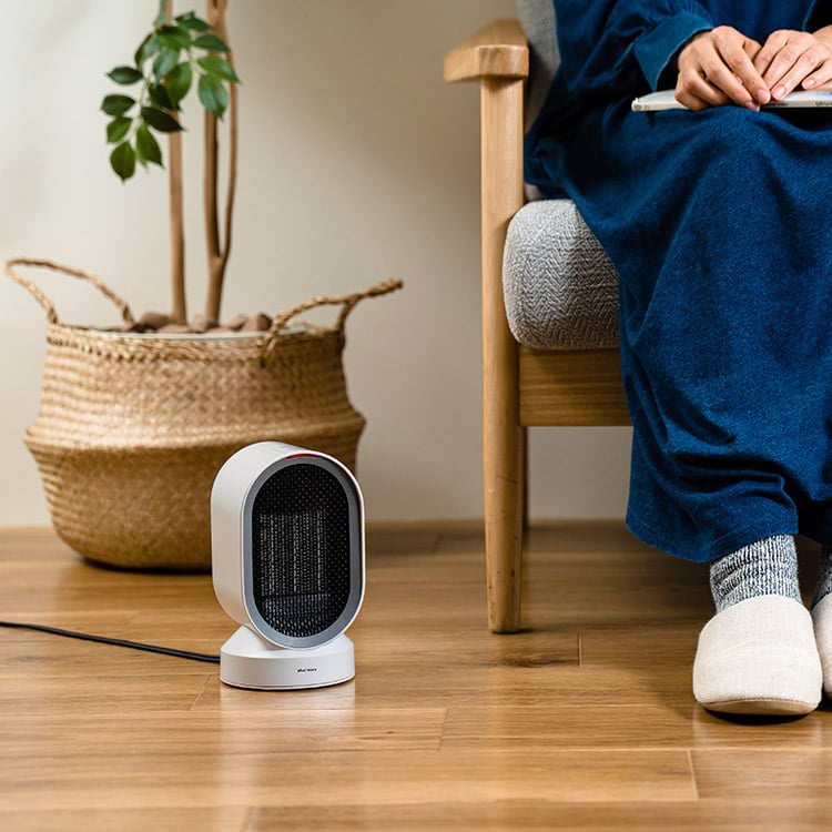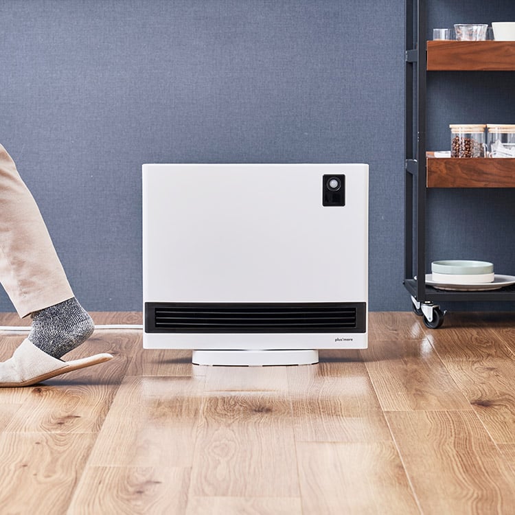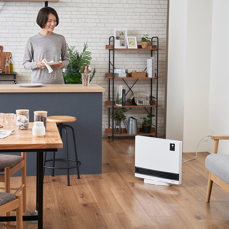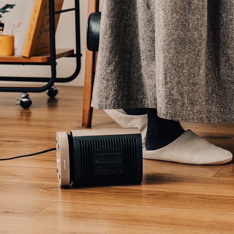 "上下と左右" 2方向への暖かさをお届けします。ヒーターとファン、2つのモードは夏は涼しく冬は暖かく1年通してあなたの暮らしに寄り添います。