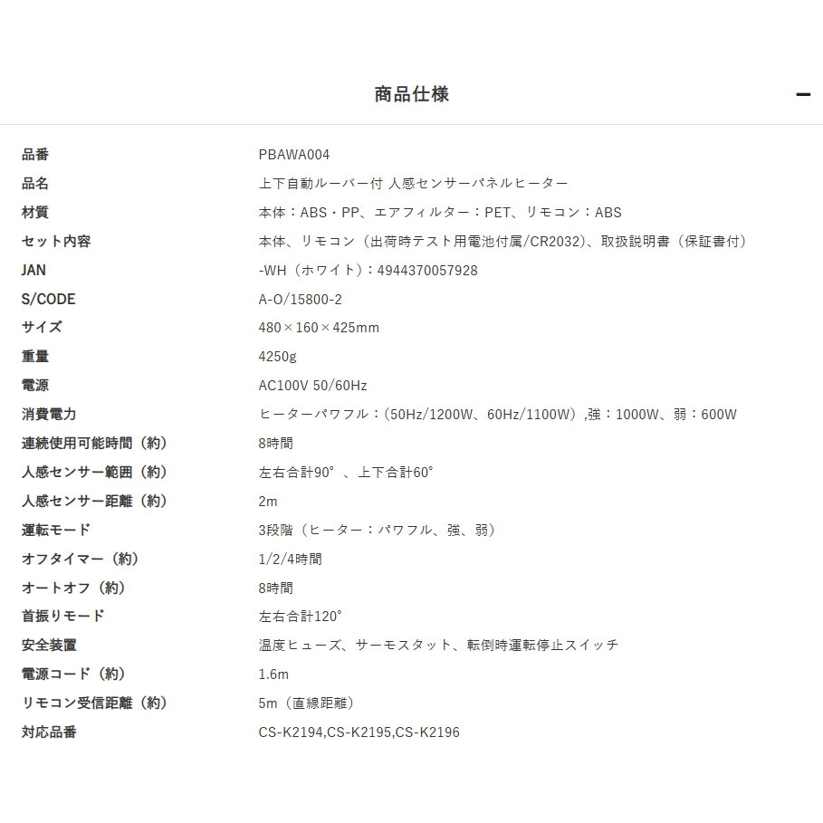上下自動ルーバー付 人感センサーパネルヒーター
