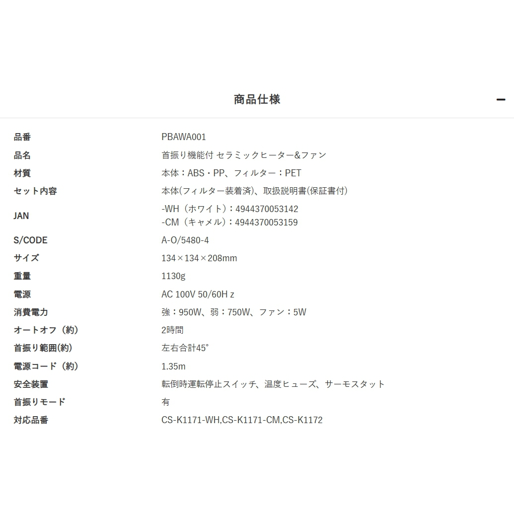 首振り機能付きセラミックヒーター&ファン